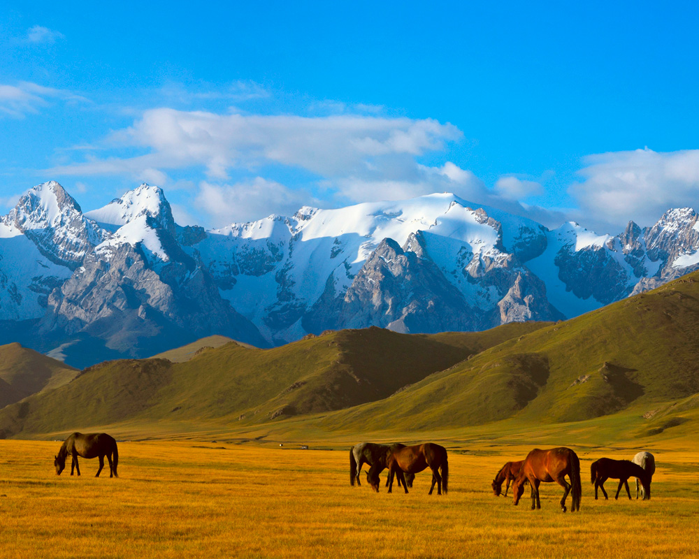 Este viaje cultural y de naturaleza recorre Bishkek, la Torre de Burana, los campamentos de yurtas en Son Kul y las montañas del Tien Shan, combinando pequeñas caminatas, encuentros con familias nómadas y petroglifos milenarios.