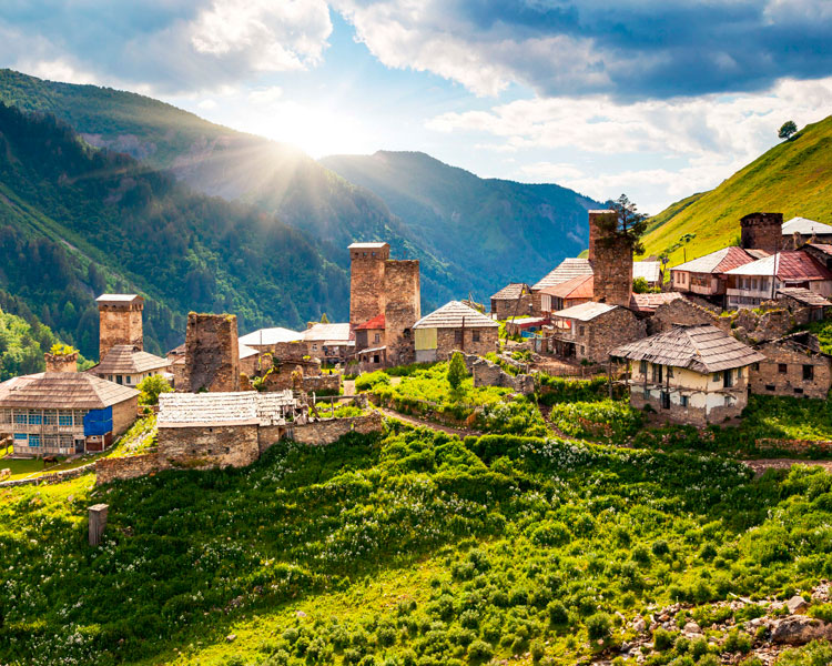 Nos espera la Cordillera del Cáucaso, que alcanza los cinco mil metros. Bosques y valles perdidos hasta hace poco incomunicados como Svanetia. Aquí viven los Svan, en pueblos y castillos de piedra. Haremos senderismo por rutas con vistas a los glaciares del Uschba y del Shkara antes de llegar a Batumi, histórica ciudad a orillas del Mar Negro donde podremos darnos un buen baño.